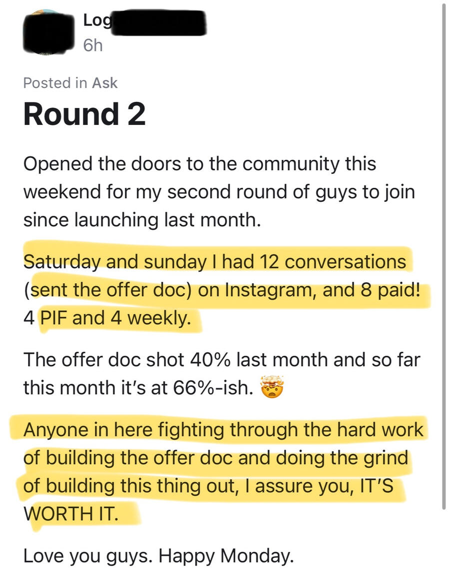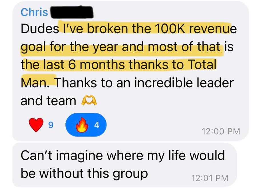 The Total Offer is the lifeblood of my high-ticket, solo coaching biz.It helped me grow Total Man to $10-20k weeks in just 8 months—without taking a single sales call.Normally, it costs $100 to access, but today, the DFY plug-and-play offer templates, bonuses, and 80-min step-by-step training are yours for just $7.Click the button below, enter your info on the checkout page and instantly get the templates + training.No catch. No gimmicks.And why am I doing this?Simple - If you get a result with it, you might want my help to get more results.