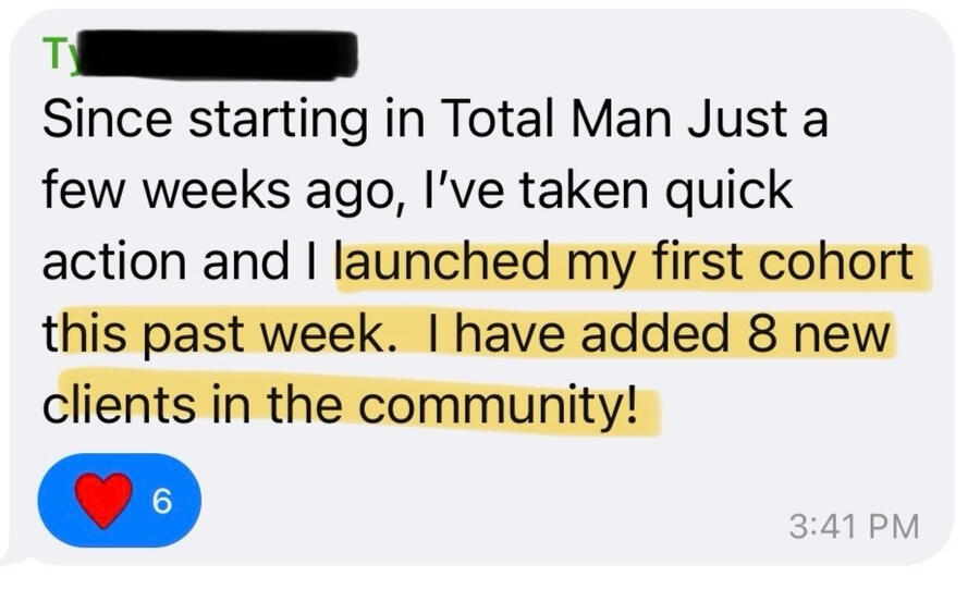 The Total Offer is the lifeblood of my high-ticket, solo coaching biz.It helped me grow Total Man to $10-20k weeks in just 8 months—without taking a single sales call.Normally, it costs $100 to access, but today, the DFY plug-and-play offer templates, bonuses, and 80-min step-by-step training are yours for just $7.Click the button below, enter your info on the checkout page and instantly get the templates + training.No catch. No gimmicks.And why am I doing this?Simple - If you get a result with it, you might want my help to get more results.